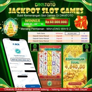 Selamat kepada User id :ISE***45 Telah berhasil mendapatkan kemenangan besar pada permainan SLOT GAMES MAHJONG WAYS 2,kemenangan Sebesar Rp.60.000.000, Setelah mengisi formulir withdraw dengan kurung waktu hanya 5 – 10 menit pihak DIKATOTO sudah melakukan transfer kepada pemilik Userid dan dana sudah dapat di cairkan oleh pemenang. Bukti pembayaran yang kami berikan merupakan bukti pembayaran yang SAH / VALID yang langung di dapatkan melaui tanda transfer transaksi dari Bank yang di tuju.